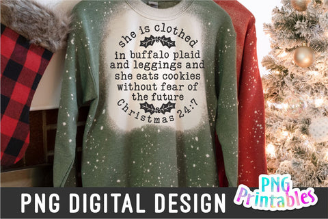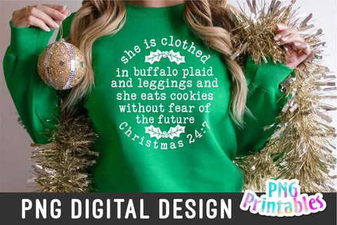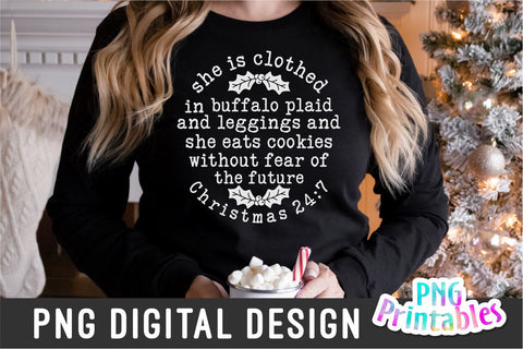 She is clothed in buffalo plaid and leggings and she eats cookies without fear of the future. Christmas 24:7, printable png file