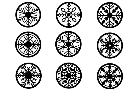 Snowflakes Coaster SVG files for laser & Paper Cutting. Christmas Template Design SVG, PNG, DXF, EPS, JPG