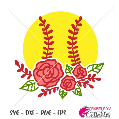Softball with Flowers - Roses - Baseball - Shirt design - SVG