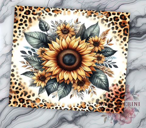 Sunflowers Leopard 20oz Tumbler Wrap PNG, Sunflowers Tumbler Png, Straight & Tapered Tumbler Wrap, Instant Digital Download