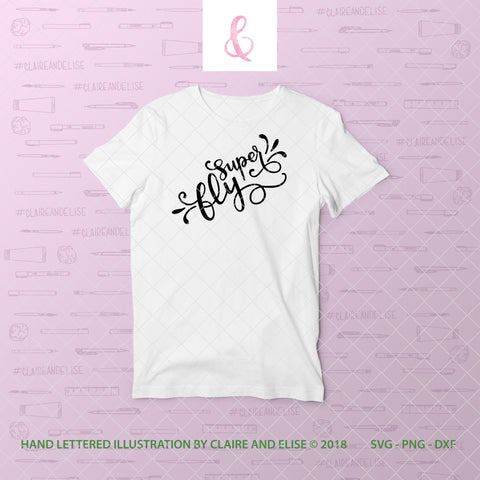 Hand lettered 'Super Fly' illustration. Can be applied to just about anything even cardstock! I have even applied this illustration to handmade cards using adhesive vinyl or cutting it out on another piece of cardstock to glue on top of a card.