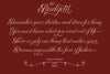 The Bridgeta features 389 glyphs, including initials and terminal letters, alternates, ligatures, and multiple language support.