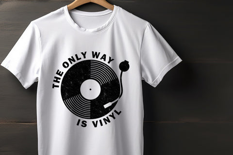 The Only Way Is Vinyl – This retro vinyl record design has a vintage distressed aged effect, and a transparent background. Supplied in both a black png, and a white png, it looks great on light or dark t-shirts.