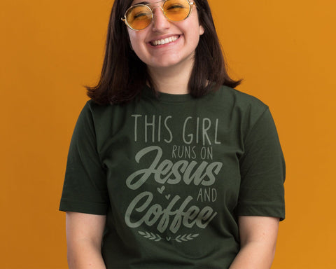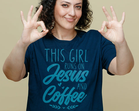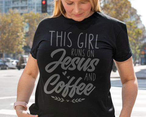 "This Girl Runs On Jesus And Coffee Svg" for tshirts, shirts, mugs, hoodies, greeting cards, stickers, decals, banners, gifts, scrapbooking, Cricut, vinyl cutting, silhouette cutting, plasma cutting, laser-CNC cutting, Glowforge, home decor, wall art, metal art, decorating, engraving, panoramic images, panels, and so much more. The possibilities for using it are endless. Your only limit is your imagination!
