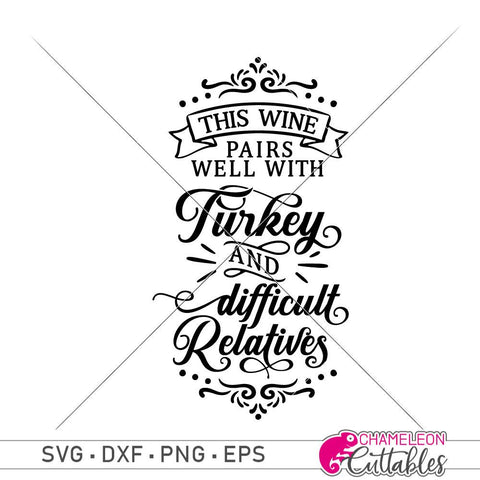 This Wine pairs well with Turkey and difficult Relatives - funny Wine Bottle Bag SVG - Thanksgiving - Christmas