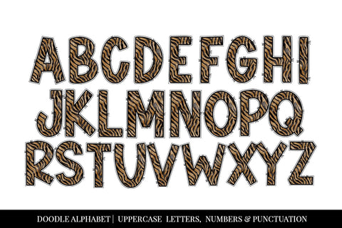This tiger pattern doodle letter alphabet set includes hand-drawn uppercase letters, perfect for digital crafting, scrapbooking, and DIY projects. The unique tiger pattern adds a wild touch to your designs, making them stand out. Download now and get instant access to this printable alphabet set. Use these stylish letters in various creative projects such as posters, invitations, and more!