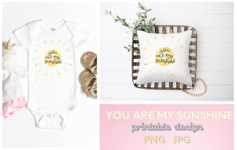 Sweet watercolor sun and the saying, "You Are My Sunshine," is the perfect digital design to brighten up any project. Available in both PNG and JPG formats. Whether you're embellishing apparel, accessories, paper or home decor, let this sweet design add a touch of whimsy and sweetness to your projects.