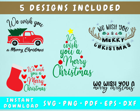 This instant download digital product includes 5 We Wish You A Merry Christmas SVG designs. You will receive ZIP file after your purchase is completed.