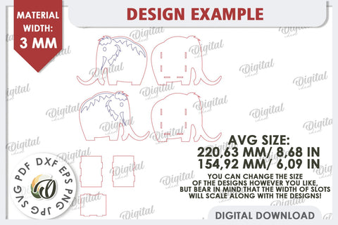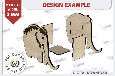 Wooden Mammoth Pen Holder Laser Cut. Phone Stand SVG