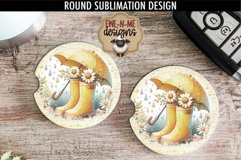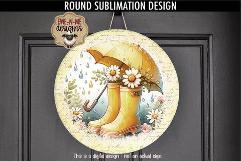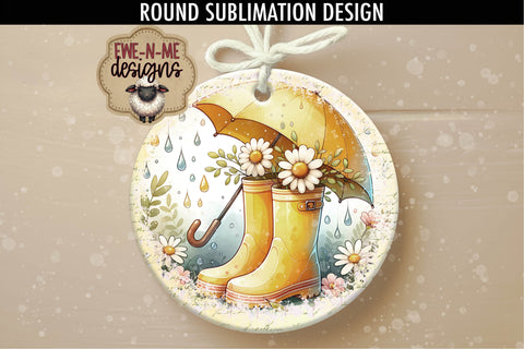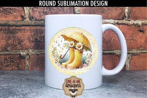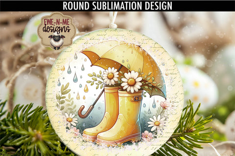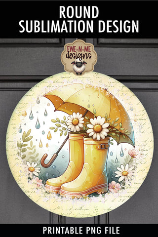 Yellow Rain Boots Umbrella Sublimation Design | Round PNG