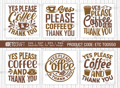 Yes Please Coffee & Thank You SVG Bundle, Coffee Svg, Coffee Party Svg, Coffee Life, Coffee Quotes, ETC T00550