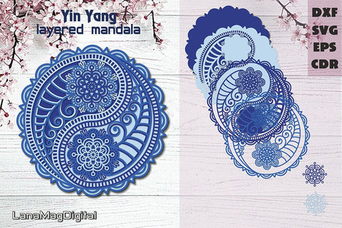 Yin Yang layered mandala svg Flower mandala Shadow box