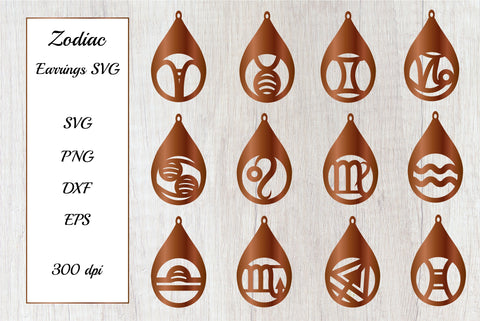 Zodiac Earrings SVG. Earrings Template. Astrology SVG Bundle